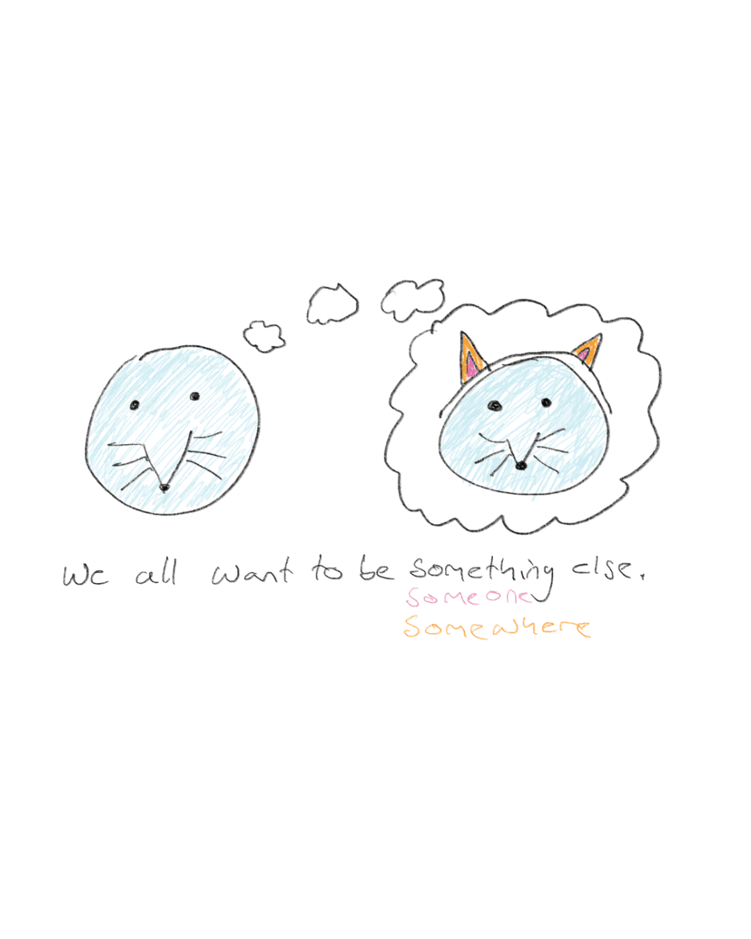 Instead, the only thing a creative piece of work needs to do is reflect the person creating it. In my case, that's imperfect, a bit crude and simply human. There is something about the very unpolished sketches and impulsive conciousness that gets erased when you edit and rework things in the pursuit of perfection that makes my mind purr. It feels as if I've caught the essense of the the thought I'm trying to convey, even if i'm not communicating it in the most 10/10 way.