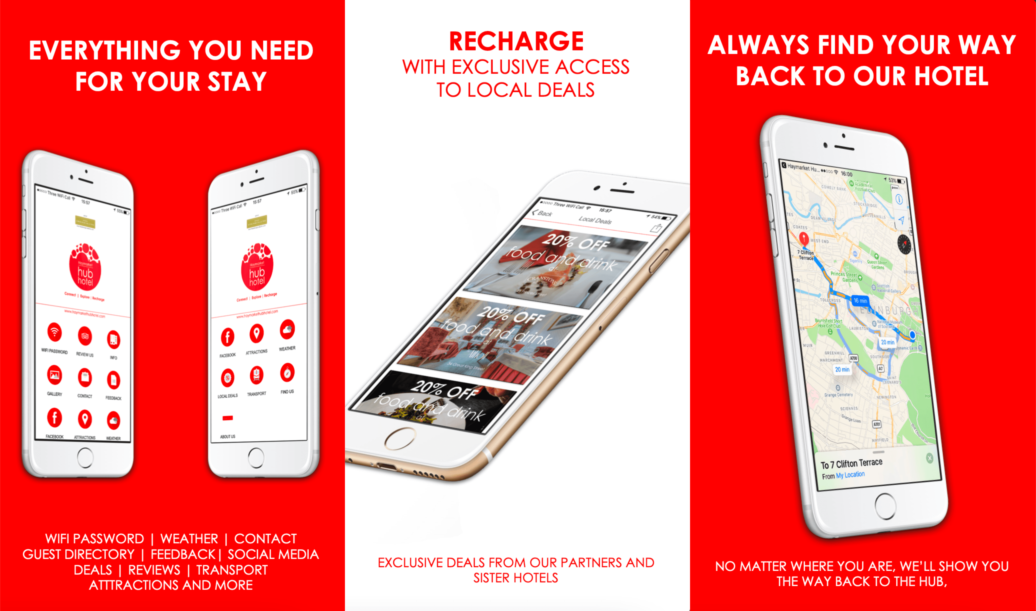 One of the more unusual projects during this period was a partnership with Handy, a company that provided in-room smartphones for hotel guests to use freely around the city. I led the development of a branded app for each hotel, natively installed on the Handy devices but also available on Google and Apple app stores.